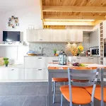 Mikrohullámú sütő, hűtő és konyhai edények szintén biztosított a főzéshez.